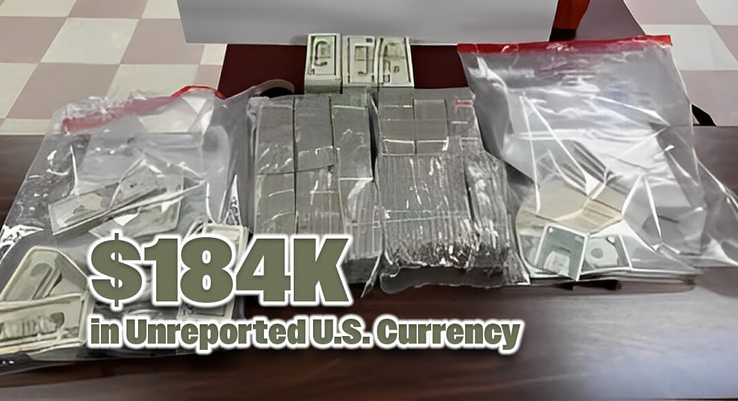 BROWNSVILLE, Texas — U.S. Customs and Border Protection officers working at the Brownsville and Matamoros International Bridge Port of Entry seized $184,095 in bulk, unreported U.S. currency.