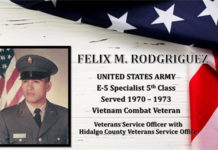 Hidalgo County Veterans Service Officer Felix M. Rodriguez led the Pledge of Allegiance at today's Commissioners Court.