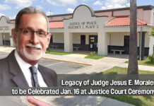 Hidalgo County Justice of the Peace Pct. 1, Pl. 2 Andrew Gonzalez will honor the late Justice of the Peace Jesus E. Morales in the renaming of the Justice Court to carry on his legacy. A ribbon cutting ceremony will be held on Friday, January 16 at 11 a.m. at the court located at 1902 Joe Stephens Ave. Suite 302 in Weslaco.