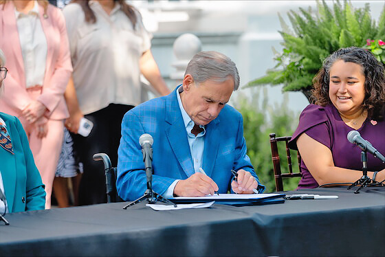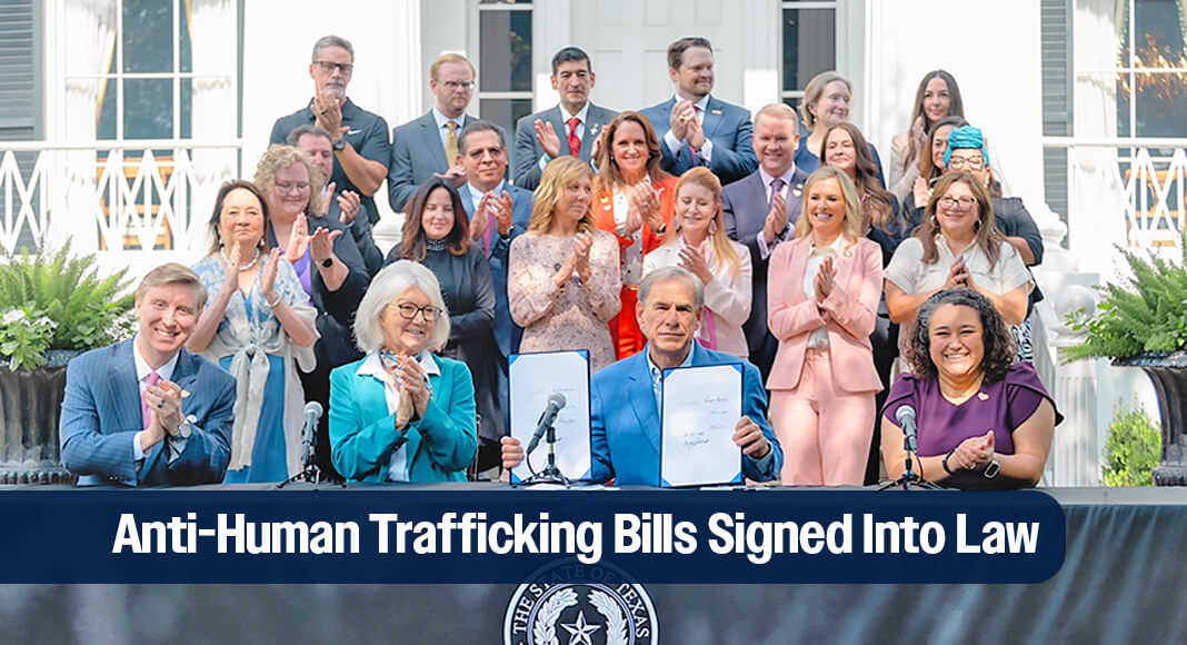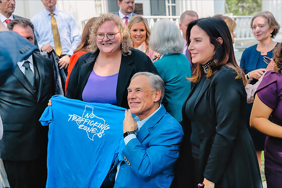 The Governor was joined by First Lady Cecilia Abbott, Senators Joan Huffman and Tan Parker; Representatives Daniel Alders, David Cook, Paul Dyson, Helen Kerwin, Marc LaHood, Terri Leo-Wilson, John Lujan, Shelly Luther, Joanne Schofner, and Denise Villalobos; and anti-human trafficking advocates.
