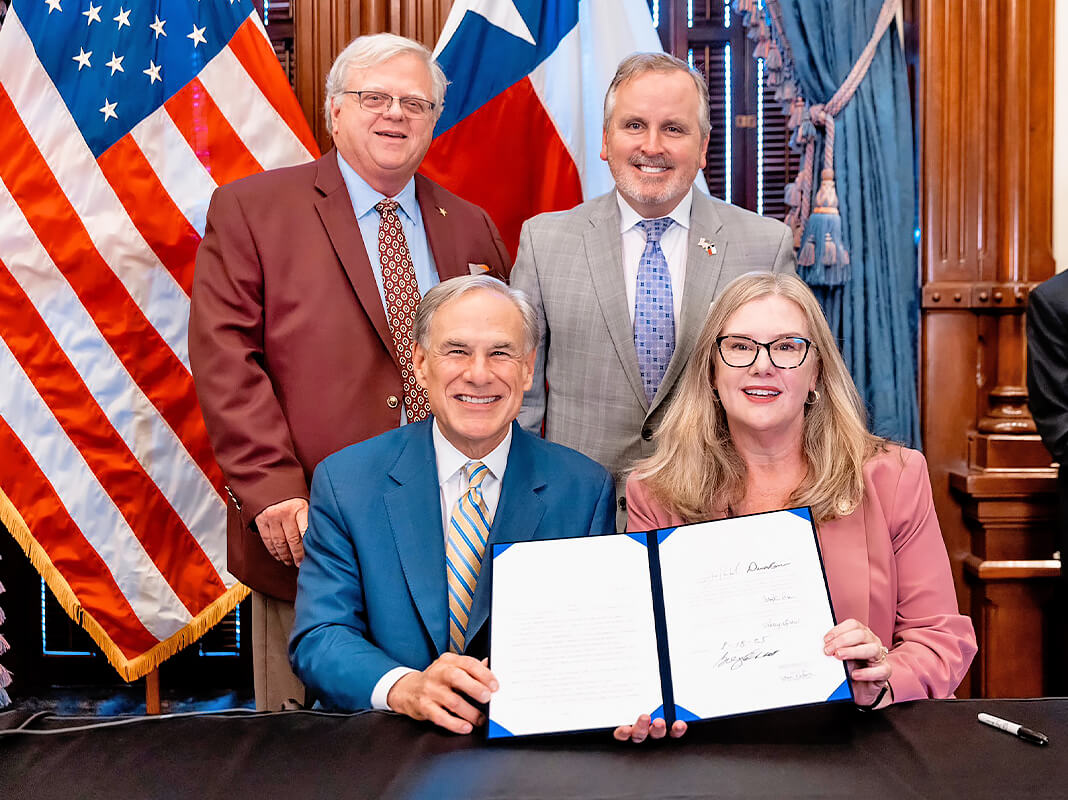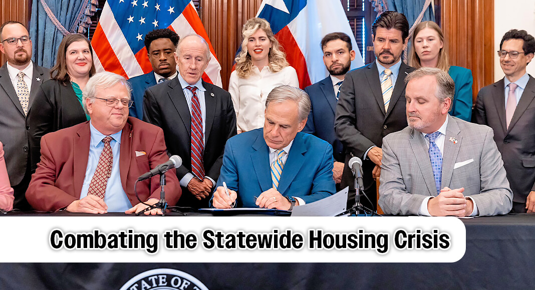The Governor was joined by Senator Paul Bettencourt, Senator Bryan Hughes, Representative Gary Gates, Representative Cole Hefner, Representative Angelina Orr, and other housing policy advocates.