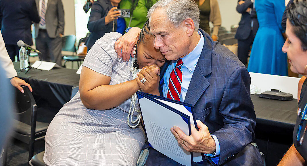 The Governor was joined at the bill signing by Lieutenant Governor Dan Patrick, Chairwoman Joan Huffman, Chairman John Smithee, Crime Stoppers of Houston CEO Rania Makarious, Crime Stoppers of Houston Director of Victim Services and Advocacy Andy Kahan, and bail reform advocate Aimee Castillo.