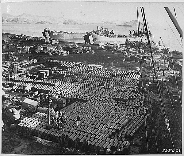 Supplies and equipment are evacuated from the onslaught of the Chinese communist forces bearing down on Hungnam, North Korea, during the Korean War, Dec. 11, 1950. Photo Credit: Army/National Archives via US Department of War