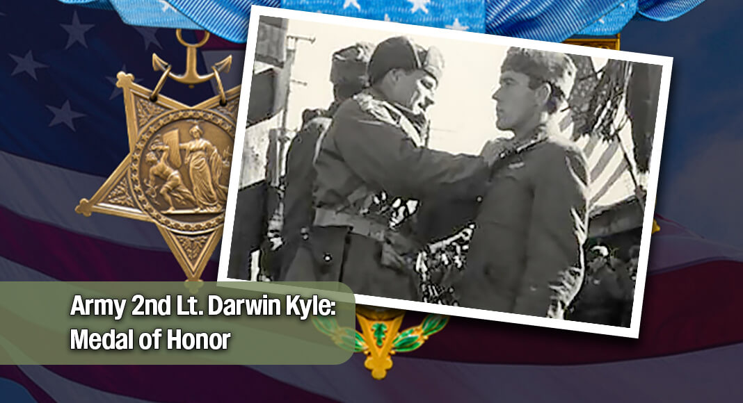On Feb. 16, 1951, the platoon that Kyle was leading was ordered to remove Chinese defenders from snow-packed Hill 185 near Kamil-Ni, South Korea. When they got pinned down by intense fire, Kyle remained out in the open so he could move among his men and encourage them to continue advancing toward the strongly entrenched enemy.