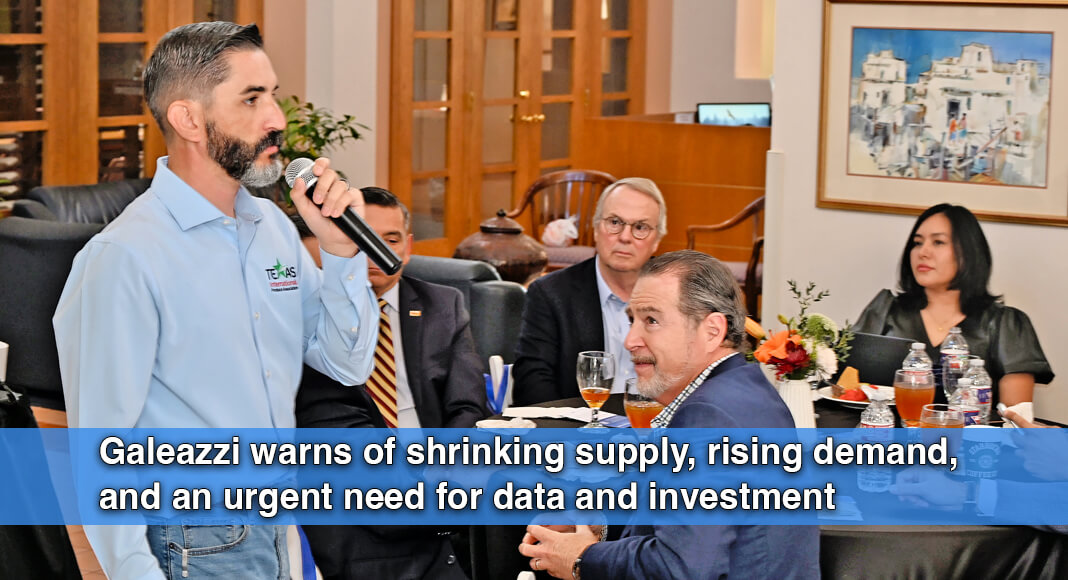 The region depends heavily on the Rio Grande River for its freshwater. “We get 90% of our fresh water in the valley from the river,” Galeazzi said, referencing the 1944 Water Treaty, under which Mexico is required to deliver 350,000 acre-feet annually. “That’s about a third of the water we need for the Rio Grande Valley,” he said, noting that any shortfall creates immediate pressure on the system.