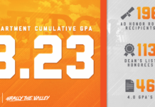 The University of Texas Rio Grande Valley (UTRGV) Department of Intercollegiate Athletics announced on Thursday that the department’s 256 student-athletes now hold a 3.23 cumulative grade point average (GPA) while 196 student-athletes are part of the Spring Athletic Director’s Honor Roll by achieving a GPA of at least 3.0 while serving as full-time students as part of a team during the fall semester.