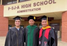 Three Rio Grande Valley brothers returned home and recently made time to visit their alma mater, PSJA Early College High School in San Juan, after recently graduating from various universities across the state and nation.