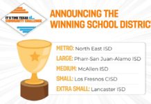 For the 3rd consecutive year, Pharr-San Juan-Alamo ISD (PSJA ISD) was named the winner of the Large School District Category of the statewide It’s Time Texas Community Challenge sponsored by H-E-B.