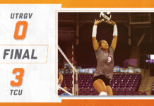 FORT WORTH – The University of Texas Rio Grande Valley (UTRGV) Vaqueros volleyball team fell to the host TCU Horned Frogs 0-3 (17-25, 17-25, 17-25) at the Cowtown Classic on Thursday at Schollmaier Arena.