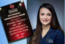 IDEA Palmview College Preparatory’s Founding Principal, Deirdre Medina, has been awarded the Outstanding School Administrator Award from the Agriculture Teachers Association of Texas (ATAT).Â