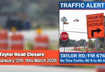 As part of the FM 676 (Mile 5 Rd) widening project, south Taylor Road, between FM 676 to just north of Mile 4 Road in McAllen, will close to through traffic for the reconstruction of the FM 676/Taylor Road intersection, starting Monday, January 12.