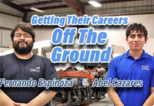 Abel Cazares and Fernando Espinoza, each of whom is pursuing an Associate of Applied Science degree, have accepted jobs as aircraft airframe and powerplant mechanics with Envoy Air.