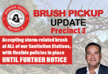 Community brush pickups are scheduled for next week. In the meantime, we ask Precinct 3 residents to leave brush by the curbside.