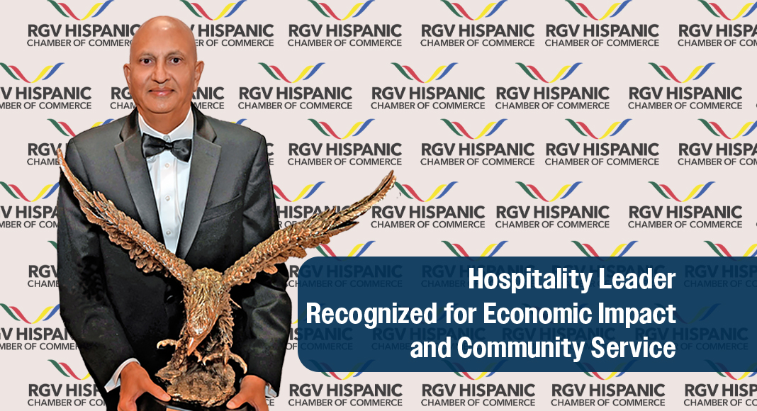 Barry R. Patel, CEO of Ruby Red Hospitality and Perspective Hospitality Management Services, was awarded the prestigious Golden Eagle by the Rio Grande Valley Hispanic Chamber of Commerce during their annual Noche de Gala – A Night in Bloom, held on May 15, 2025. The award recognizes individuals whose leadership, business success, and community involvement have impacted the Rio Grande Valley.