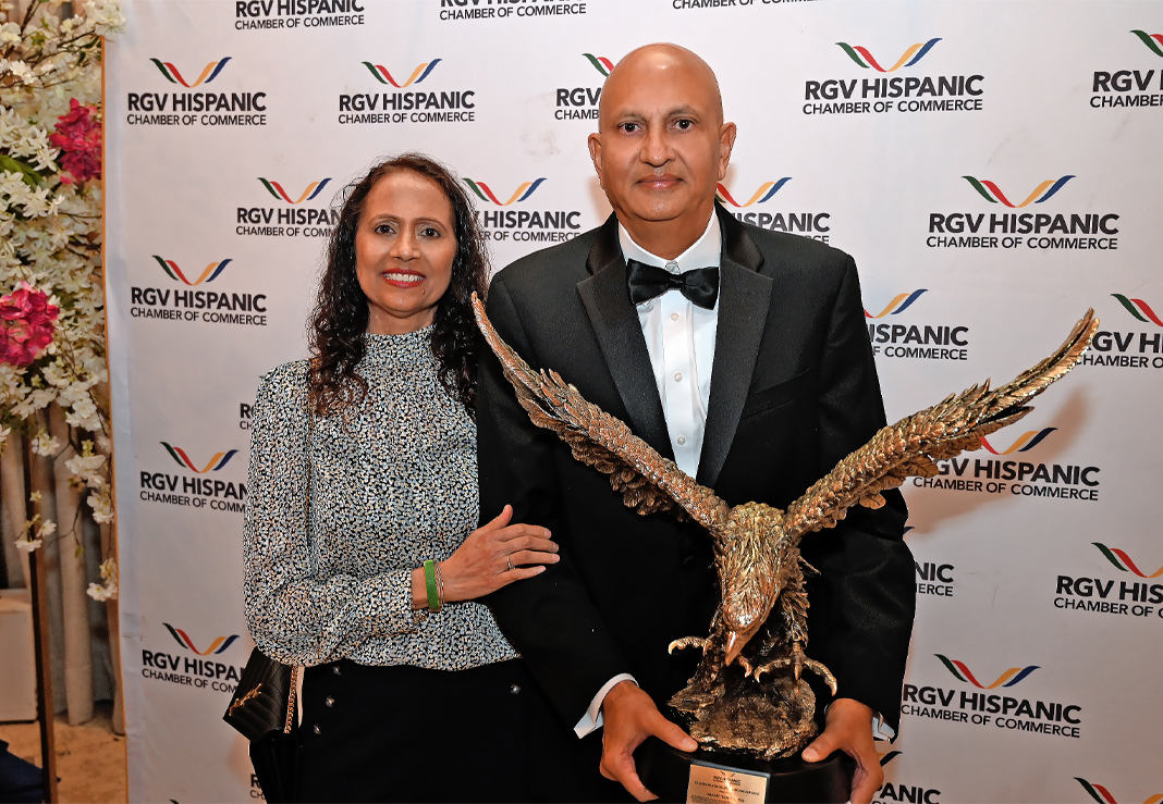 Patel expressed deep appreciation for the honor and the community in his acceptance remarks. “Cynthia, and all the Rio Grande Valley Hispanic Chamber of Commerce board members, I am deeply honored and truly grateful for this recognition you have bestowed upon me,” he said. “I’ve lived in many places and met many people, but never have I experienced a community like the one I’ve found here in the Rio Grande Valley.” Cynthia Zakulenski is the President of the RGV Hispanic Chamber.