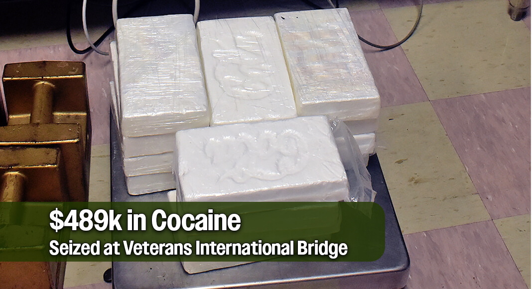 The seizure took place on Saturday, Feb. 14, at the Veterans International Bridge. CBP officers referred a 1987 Kenworth tractor for a secondary examination after a nonintrusive imaging system scan indicated anomalies. While in the secondary inspection area, with the aid of a canine unit, CBP officers discovered 16 packages hidden within the vehicle. CBP officers removed the packages which contained a total of 36.64 pounds of alleged cocaine.
