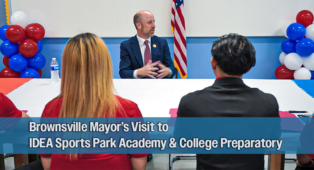 IDEA Sports Park Academy and College Preparatory welcomed Brownsville Mayor John Cowen for a special campus visit and student-led discussion. The visit was aimed to provide students the opportunity to engage directly with a local leader whose career reflects the importance of representation and civic engagement in Brownsville.