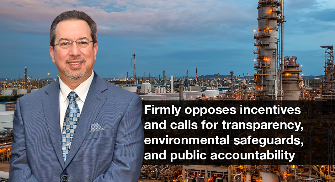 Treviño said he does not support tax incentives for the refinery. “And let me be clear on one more thing: I will not support tax incentives for this project,” he said. “Since this project has been announced and is supposedly coming to the Port of Brownsville, and we are no longer competing with any other area for this project, it should stand on its own, without asking taxpayers to subsidize it.”