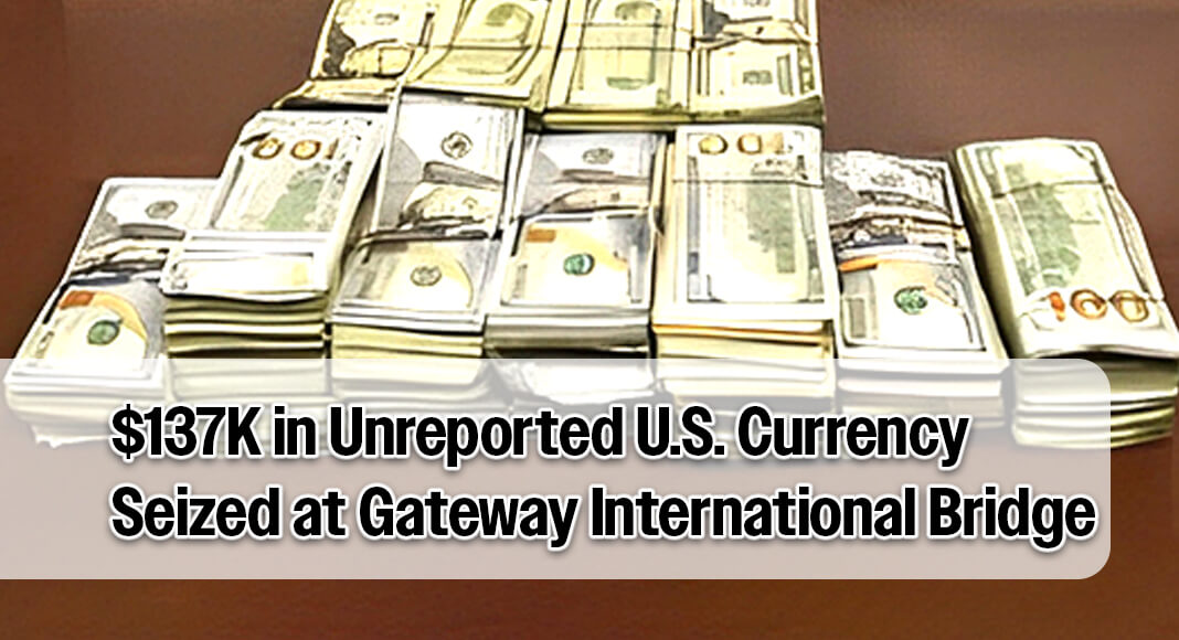 BROWNSVILLE, Texas — U.S. Customs and Border Protection officers working at the Gateway International Bridge recently seized $137,000 in bulk, unreported U.S. currency.