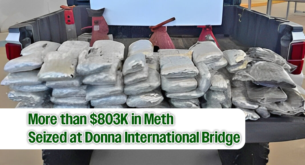 DONNA, Texas—U.S. Customs and Border Protection, Office of Field Operations officers assigned to the Progreso/Donna Port of Entry this week seized alleged methamphetamine that totaled more than $803,000 in street value in a single enforcement action.
