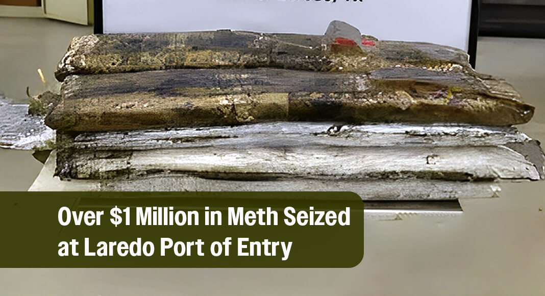 LAREDO, Texas – U.S. Customs and Border Protection, Office of Field Operations officers at the Laredo Port of Entry seized methamphetamine that totaled over $1 million in street value, June 14.