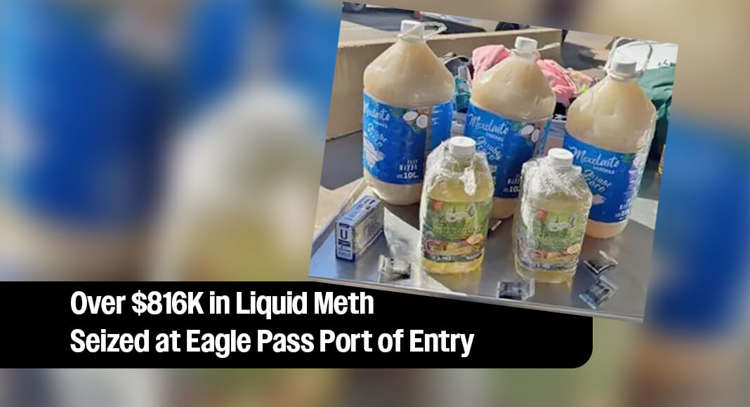 The seizure occurred on Oct. 29, at the Camino Real International Bridge when a CBP officer referred a 2008 Chevrolet Suburban for secondary inspection. Upon further physical examination, CBP officers discovered five plastic bottles containing a total of 88.8 pounds of alleged methamphetamine. The narcotics have an estimated street value of $816,556.