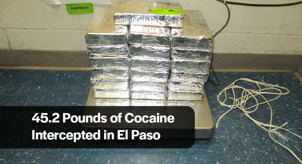 EL PASO, TEXAS – U.S. Customs and Border Protection officers working at the Bridge of the Americas international crossing in El Paso seized 45.2 pounds of cocaine May 27. The drugs were hidden in a vehicle being driven by a 20-year-old female U.S. citizen.