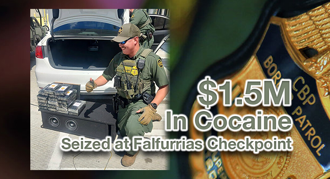 FALFURRIAS, Texas – US Customs and Border Patrol Agents and Border Patrol K9 team assigned at the Falfurrias Immigration Checkpoint recently seized almost 50 lbs. of cocaine with a value of $1,593,600.00.