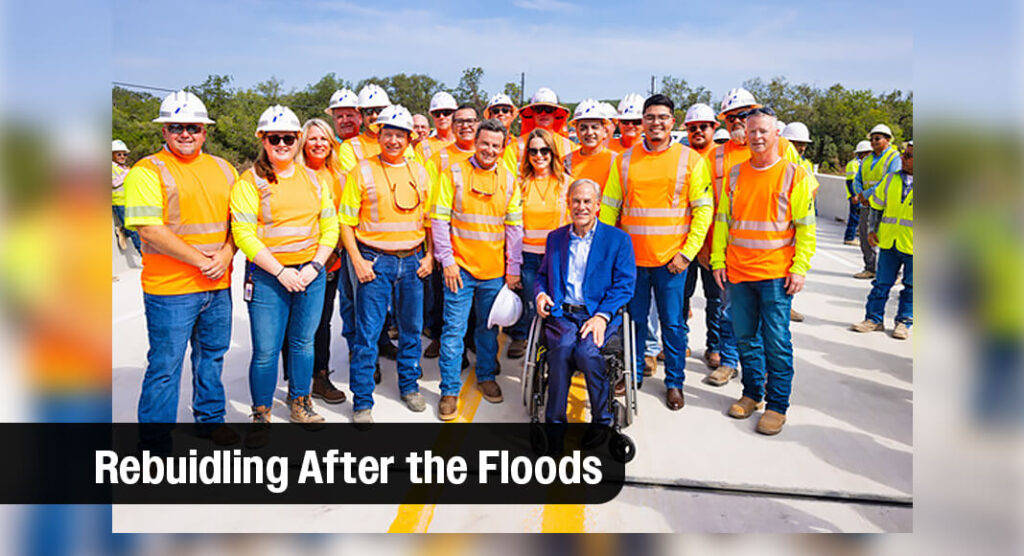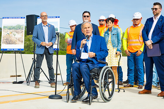 MARBLE FALLS – Governor Abbott celebrated the re-opening of the Cow Creek Bridge after the bridge was washed out by catastrophic floods last month. The bridge was rapidly rebuilt to completion in 29 days.