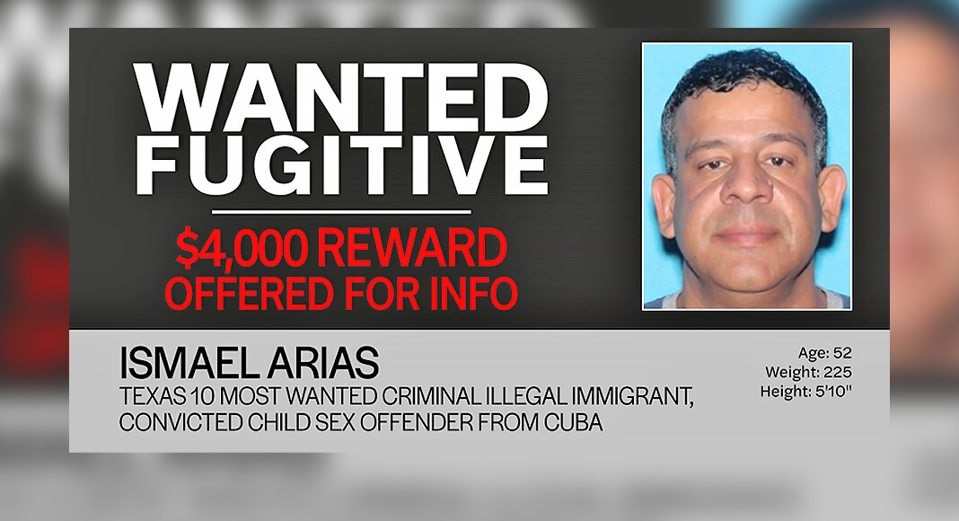 AUSTIN – Texas 10 Most Wanted Criminal Illegal Immigrant Ismael Arias – a convicted child sex offender from Cuba – is this month’s Featured Fugitive. The reward for information leading to his arrest is increased to $4,000 during November if the tip is received this month.