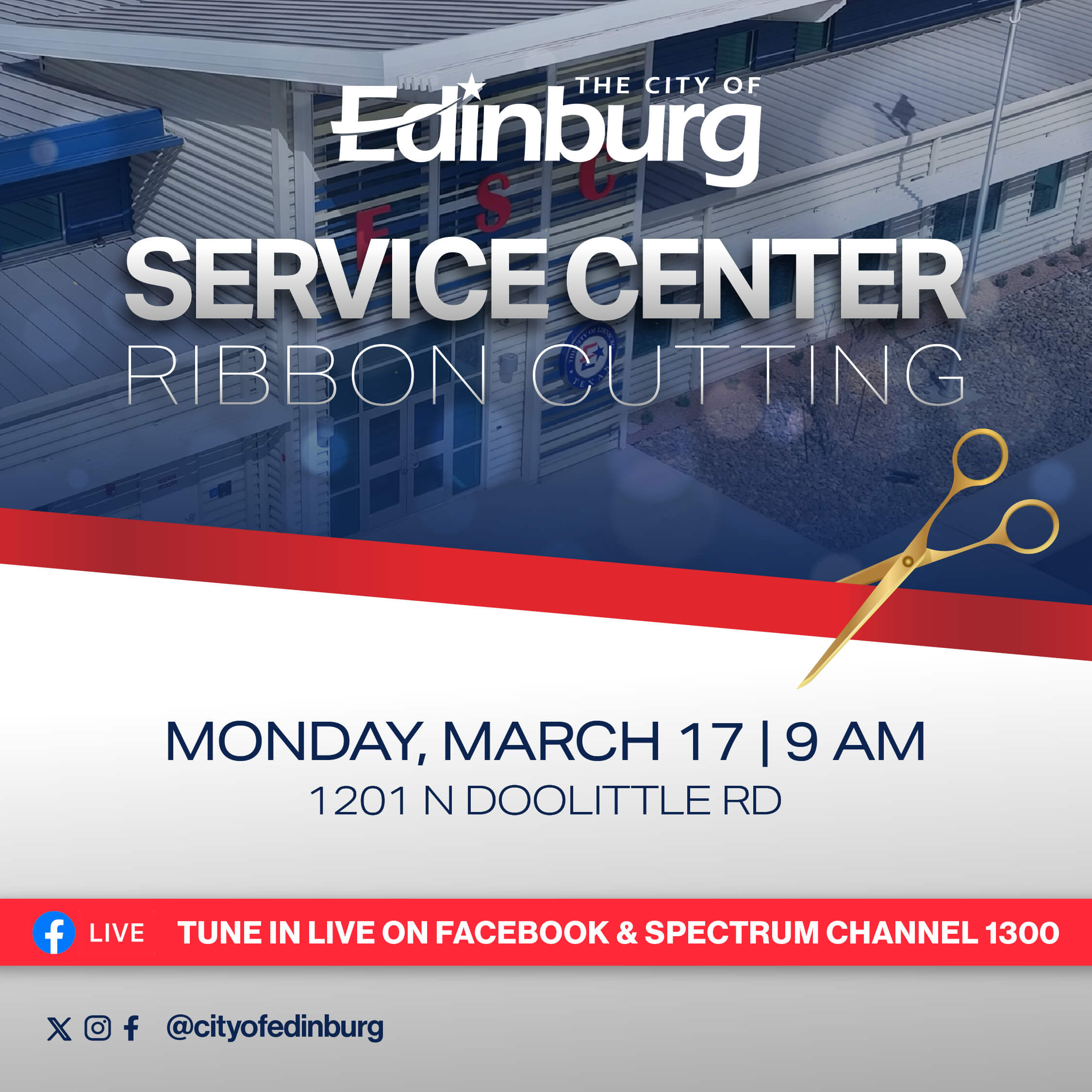 City staff will host a ribbon-cutting ceremony for the Edinburg Service Center on Monday, March 17, 2025 at 9 a.m.