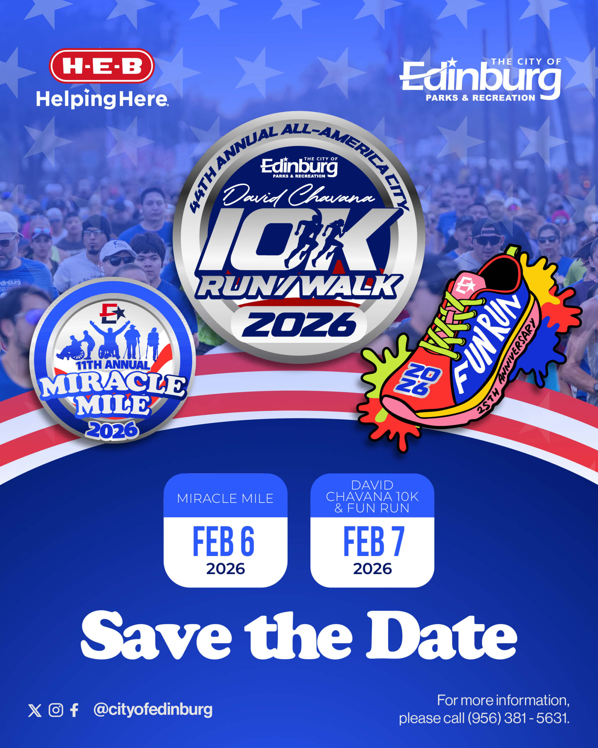 EDINBURG, Texas – Get ready to lace up those sneakers! With a new year just around the corner, the City of Edinburg is excited to announce that the 44th Annual David Chavana 10K Run/Walk will return to the 4-Time All-America City on Saturday, February 7, 2026.