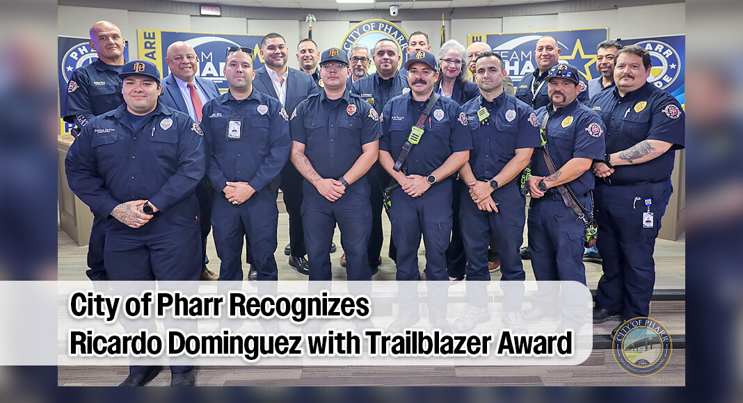 The Pharr City Commission and City Manager Dr. Jonathan B. Flores recognized Engineer Fire Investigator Ricardo Dominguez with the city’s Trailblazer Award for his outstanding dedication and exemplary service to the community. The award was presented by Pharr Fire Chief Pilar Rodriguez, joined by members of the Pharr Fire Department, who commended Dominguez for his exceptional work ethic and positive attitude. “Ricardo is part of our Fire Prevention team and has proven himself to be outgoing, outstanding, and very engaged with the public,” said Chief Rodriguez. “He is an example to the rest of the department for his ‘can do’ and work-hard attitude that we expect of our employees.” Dominguez expressed his gratitude for the recognition, stating, “Thank you to the City of Pharr for this honor. I have enjoyed the past seven years here and look forward to a continued career of growth.”