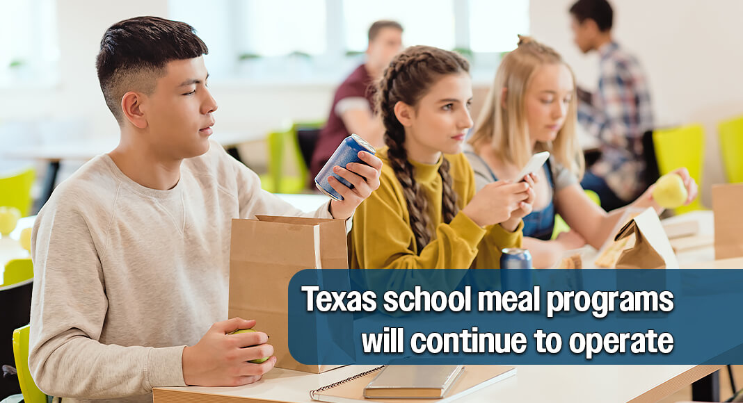 The Texas Department of Agriculture has instituted safeguards to ensure that Texas school meals will keep being served and that meal reimbursements will continue to be paid to our school districts on schedule. Texas schools will keep serving healthy breakfasts and lunches and our students will keep getting the nutrition they need to learn and grow.”
