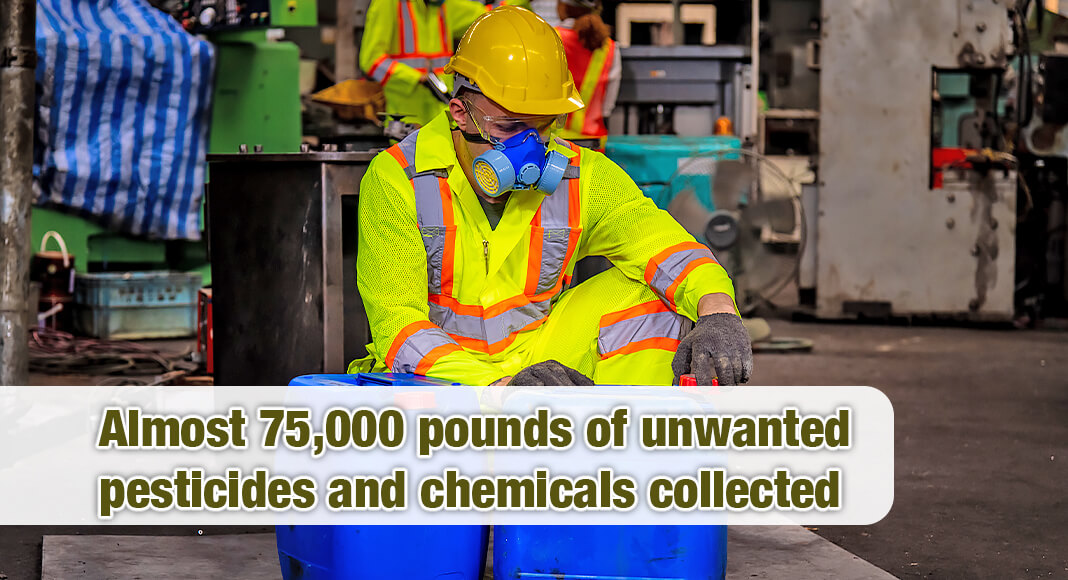 AUSTIN- Commissioner Sid Miller proudly announced that the Grimes County pesticide waste removal event, hosted by the Texas Department of Agriculture (TDA) and the Texas A&M AgriLife Extension Service in Navasota, Texas, collected an estimated 75,000 pounds of unwanted pesticides from more than 100 participating producers. This was another in a series of free public events that provide agricultural producers across the state with a safe and convenient way to dispose of unwanted pesticides and recycle pesticide containers.
