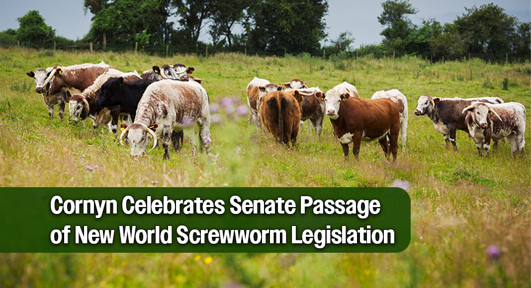 AUSTIN – U.S. Senator John Cornyn (R-TX) today released the following statement after his Stop the Screwworms With Active Readiness and Mitigation (SWARM) Act passed the Senate Monday night as part of the government funding legislation. This bill would require the U.S. Department of Agriculture (USDA) to present details to Congress on the domestic readiness and response initiatives that it both plans to implement and is already executing to combat the New World screwworm.
