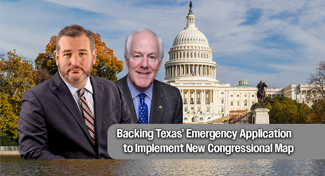 AUSTIN – U.S. Senators John Cornyn (R-TX) and Ted Cruz (R-TX) yesterday filed an amicus brief in support of the State of Texas’ emergency application to the U.S. Supreme Court for a stay of the district court injunction that barred Texas from implementing its new congressional district map. The Senators did so in part on the basis of the Purcell principle, which holds that courts should not change election rules shortly before an election.