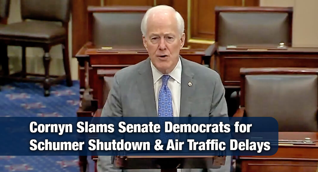 WASHINGTON – U.S. Senator John Cornyn (R-TX) slammed Senate Democrats for refusing to vote for a clean continuing resolution to reopen the government, and as a result, imposing unnecessary, avoidable burdens on hardworking Texans who are experiencing the negative effects of a government shutdown, including having to work without pay and airport delays across the state due to Federal Aviation Administration staffing issues. Excerpts of Sen. Cornyn’s remarks are below, and video can be found here.
