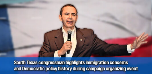 Congressman Henry Cuellar addressed immigration enforcement and political organizing during remarks on March 9, 2026, at a Texas Together Democratic rally held at the former El Cine Rey Theater.