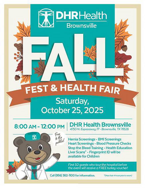 Participants are encouraged to arrive early for screenings and activities. No registration is required. For more information on the event, call DHR Health Brownsville at (956) 362-1100.