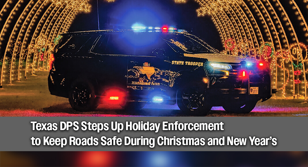 AUSTIN – The Texas Department of Public Safety (DPS) is increasing enforcement for Christmas and New Year’s to ensure Texans have a safe holiday. Texas Highway Patrol (THP) Troopers will surge enforcement efforts from Friday, Dec. 19, through Thursday, Jan. 1, and have Troopers looking for people committing traffic violations including, not wearing seat belts, driving while intoxicated, speeding, failing to follow the state’s Move Over, Slow Down law and others.