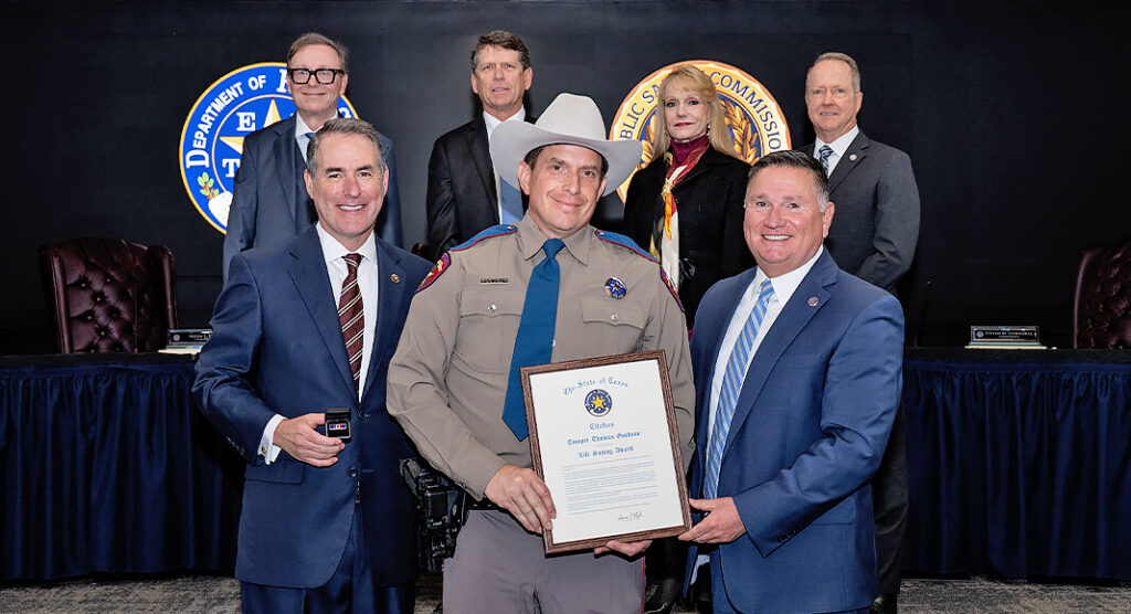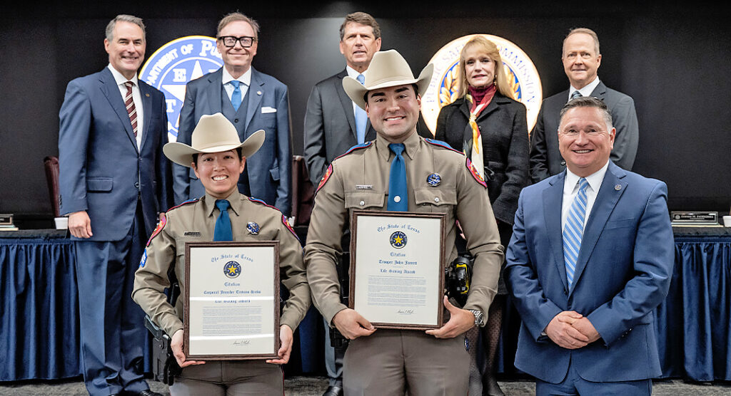 AUSTIN – The Public Safety Commission (PSC), along with Texas Department of Public Safety (DPS) Colonel Freeman F. Martin, recognized the service of several Texans at the first PSC meeting of the year yesterday at DPS Headquarters in Austin. PSC Commissioners and Colonel Martin presented two William P. Clements Excellence Awards, one Director’s Citation, five Director’s Awards and five Lifesaving Awards.