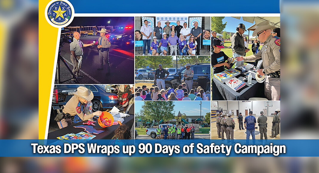 AUSTIN – The Texas Department of Public Safety (DPS) announces the conclusion of its 90 Days of Safety campaign, a three-part public safety initiative launched on Aug. 11 in honor of the department’s 90th Anniversary. The three-month-long initiative ended on Nov. 9.