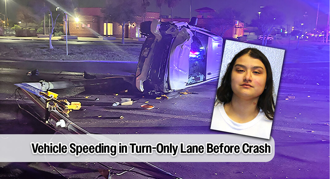 The investigation revealed the vehicle was traveling eastbound at a high rate of speed while approaching the intersection in the outside turn-only lane. The vehicle struck a traffic signal pole, knocking it down, then continued through the curve, where it overturned.