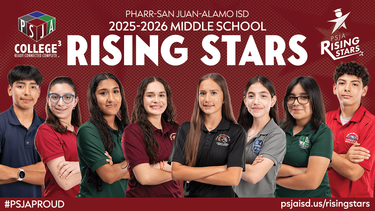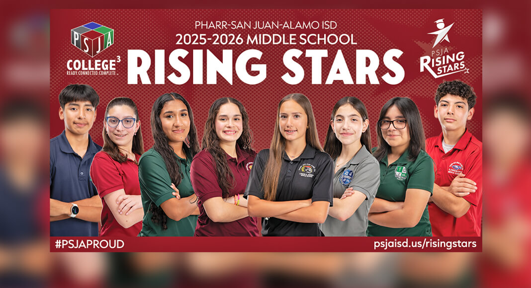 PHARR, Texas – Pharr-San Juan-Alamo Independent School District (PSJA ISD) has named the recipients of the 2025–2026 PSJA Middle School Rising Stars recognition. This district honor highlights one eighth grade student from each of the eight PSJA middle schools who exemplify academic excellence, leadership, and active involvement in their campus community.