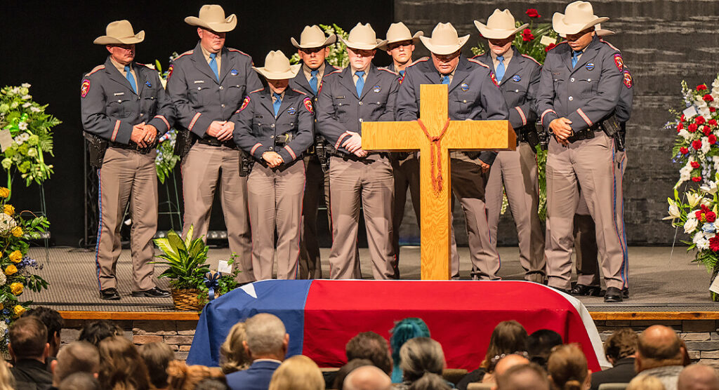 AUSTIN – Hundreds gathered at Northside Baptist Church in Huntsville to pay their respects to Texas Department of Public Safety (DPS) Highway Patrol (THP) Trooper Jerry Wayne Adamick Jr., who tragically lost his life in the line of duty last week.