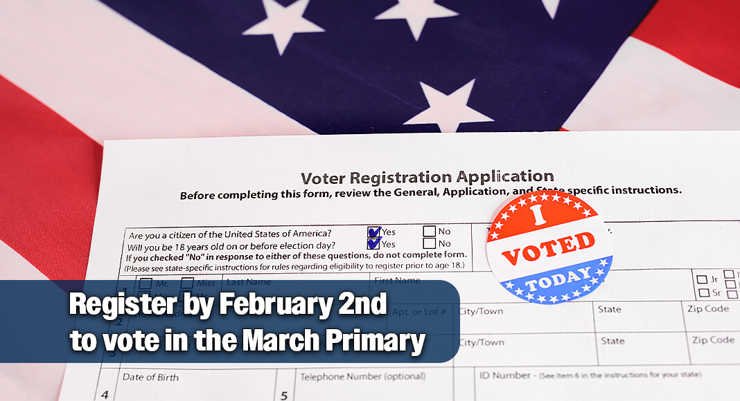 Applications must be postmarked or delivered by Feb. 2 to be effective for the March 3 Primary Election. Voters are encouraged to mail applications as soon as possible. Under guidance from the United States Postal Service, mail may not be postmarked until it reaches a processing center, which may not be on the same day it is mailed. Customers can ensure that a postmark for that day is applied to the application by visiting a USPS retail location and requesting a manual postmark.