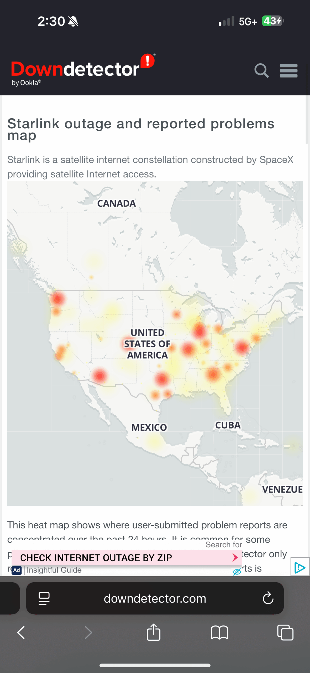 Data from Down Detector and Status Gator showed a dramatic spike in reported connectivity issues beginning shortly after 3:30 p.m. EDT. The outage map displayed a dense concentration of reports across major urban and rural areas, including Dallas, San Francisco, and parts of rural Texas. A user from central Texas commented on Reddit, āNo service for over an hour. Rebooted the dish twice. Still no connection.ā