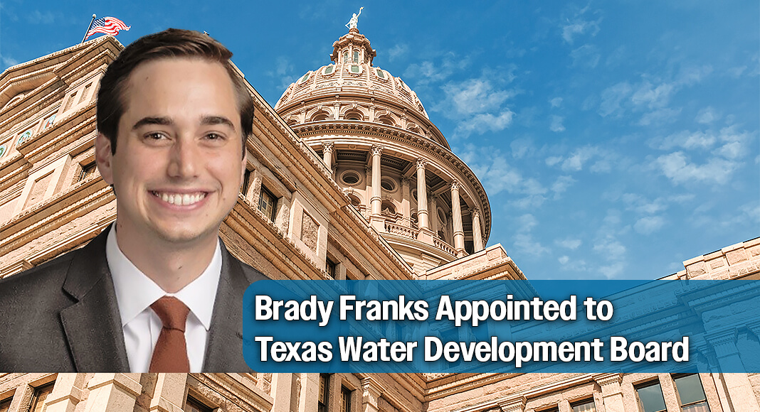 AUSTIN – Governor Greg Abbott appointed Brady Franks to the Texas Water Development Board for a term set to expire on February 1, 2031. The Board provides leadership, planning, financial, and technical assistance for the responsible development of water for the State of Texas.