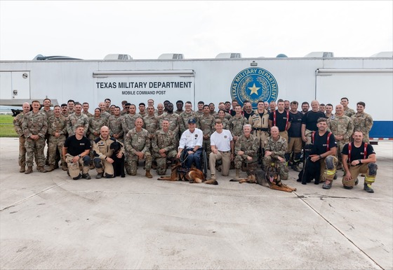 The Governor and General were joined at the briefing by Texas Division of Emergency Management Chief Nim Kidd, Adjutant General of Texas Major General Thomas Suelzer, Senior Enlisted Advisor to the Chief John T. Raines III, Texas Military Department Command Senior Enlisted Leader Command Sergeant Major Frederick Heard, Texas A&M Chancellor Glenn Hegar, Texas A&M Executive Vice Chancellor Susan Ballabina, Texas A&M Board of Regents Chair Robert Albritton, Texas A&M Engineering Extension Service Director David Coatney, Texas A&M Forest Service Director Al Davis, Texas A&M AgriLife Director Rick Avery, and other state and local officials.
